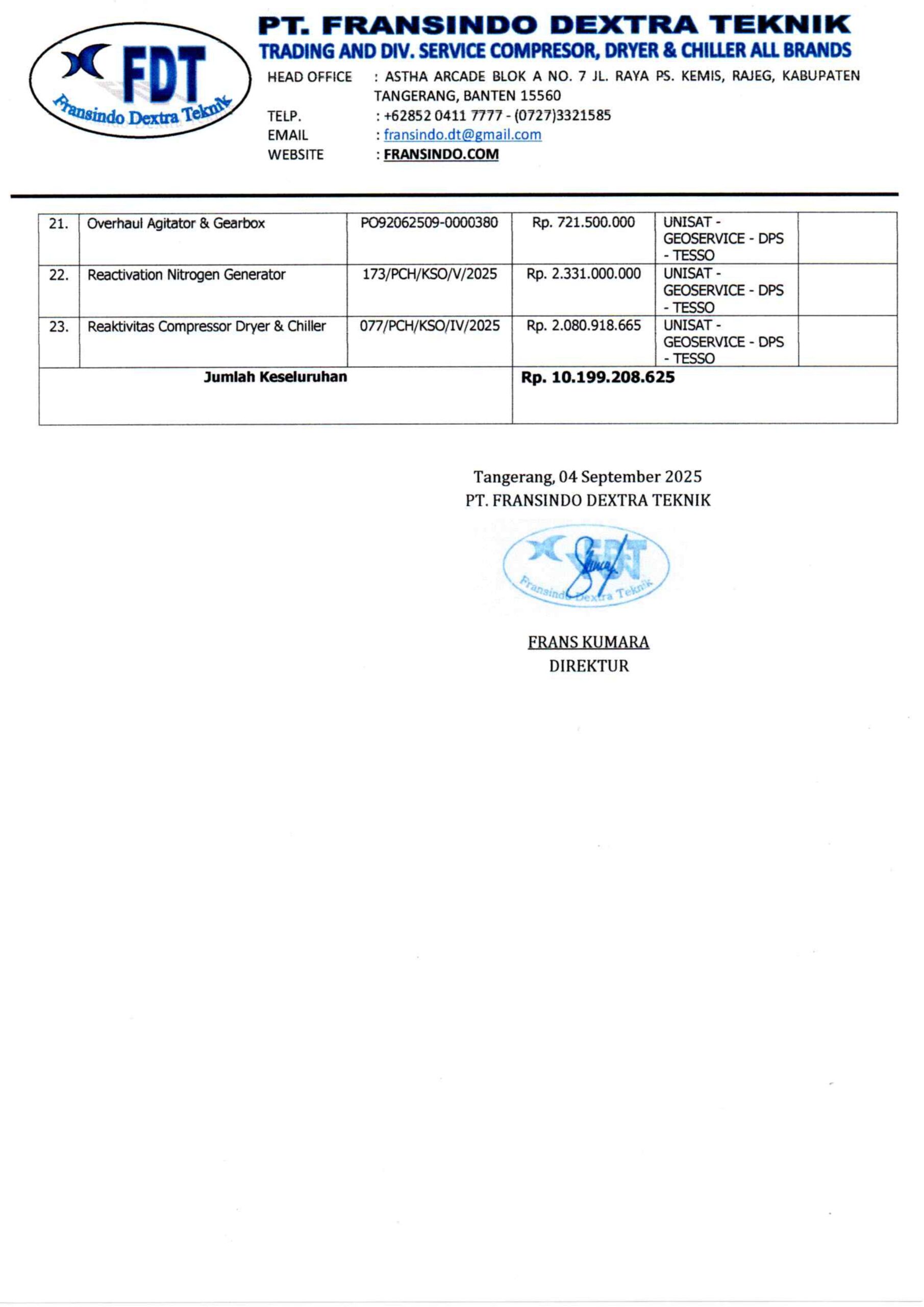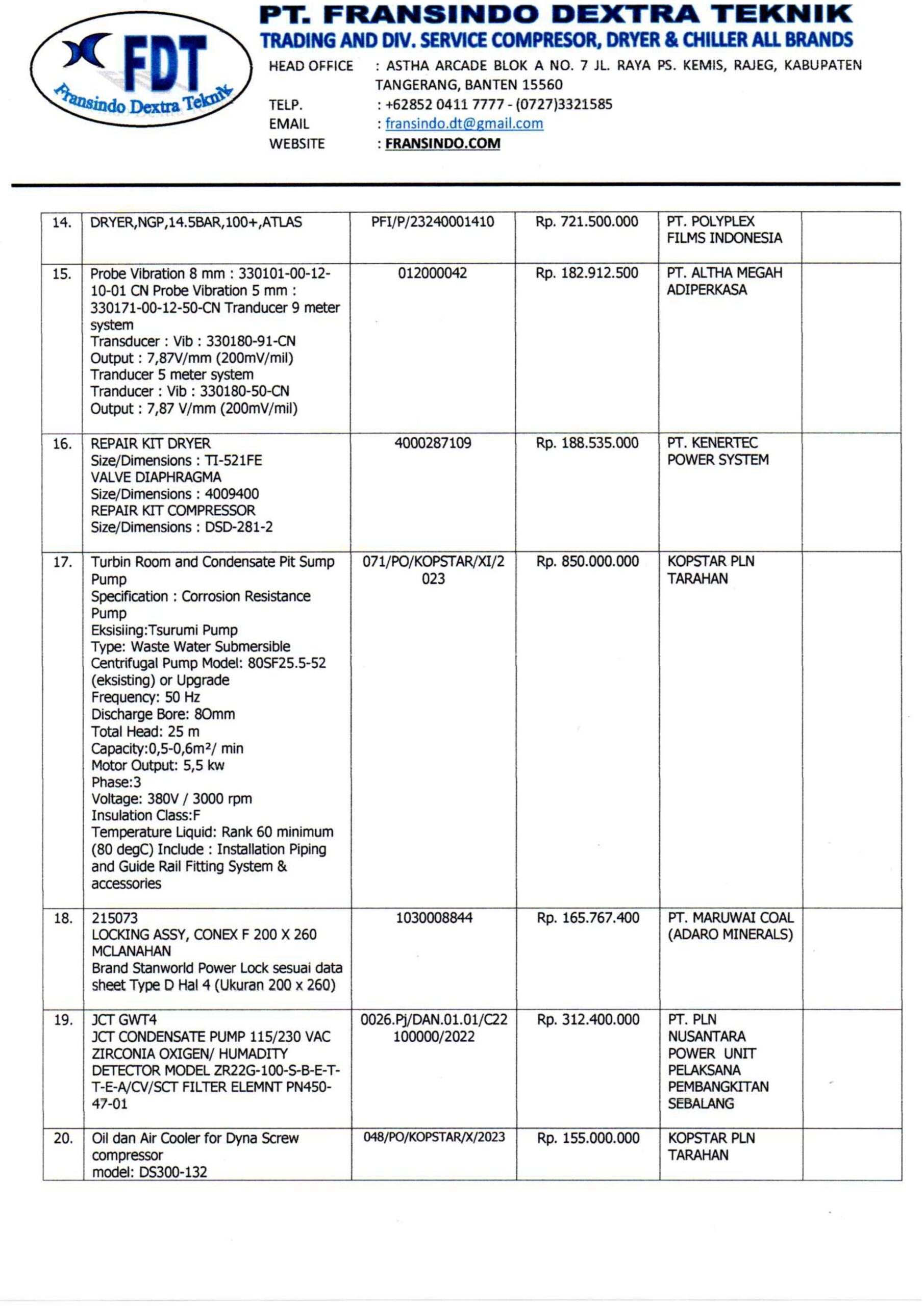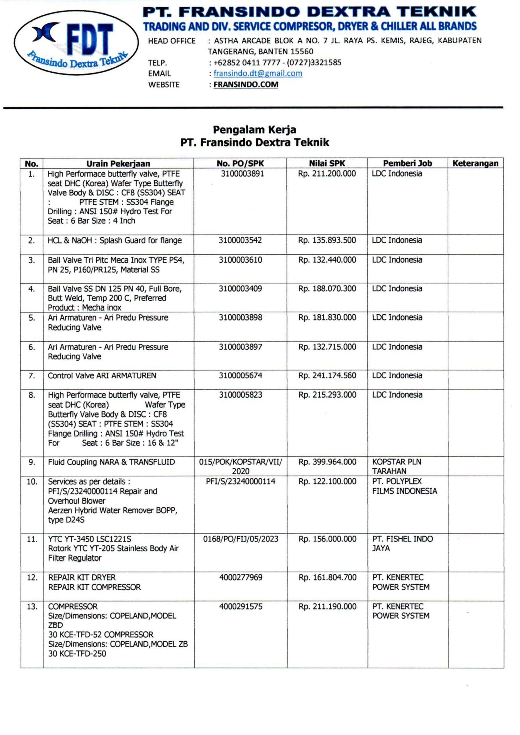 Fransindo Dextra Teknik berdiri sejak 2015 menangani dan melayani pengadaan kebutuhan barang industri palm oil refinery, Power plant, Feed Mill, Chemical Industry & Manufacturing untuk pengadaan Spesialis dalam bidang Mekanikal Seperti Valve, Coupling, Gearbox, dll.